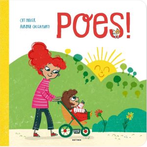 En daar gaan ze. Op iedere pagina roept het kindje wijzend vanuit de buggy Poes! Soms moet je even goed kijken waar de kat van is (in bomen, op een hekje, in een struik, in het weiland, in een muurtje, op een brievenbus). Maar iedere keer is er een ander dier veel opvallender in beeld. Met als gevolg dat moeder iedere keer het kindje verbetert. ‘Nee’, zegt mama, dat is een hond / kikker / paard / koe / varken etc. Voor de kat lijkt het een spelletje, want op een van de illustraties maakt hij een ssst-gebaar naar het kindje.